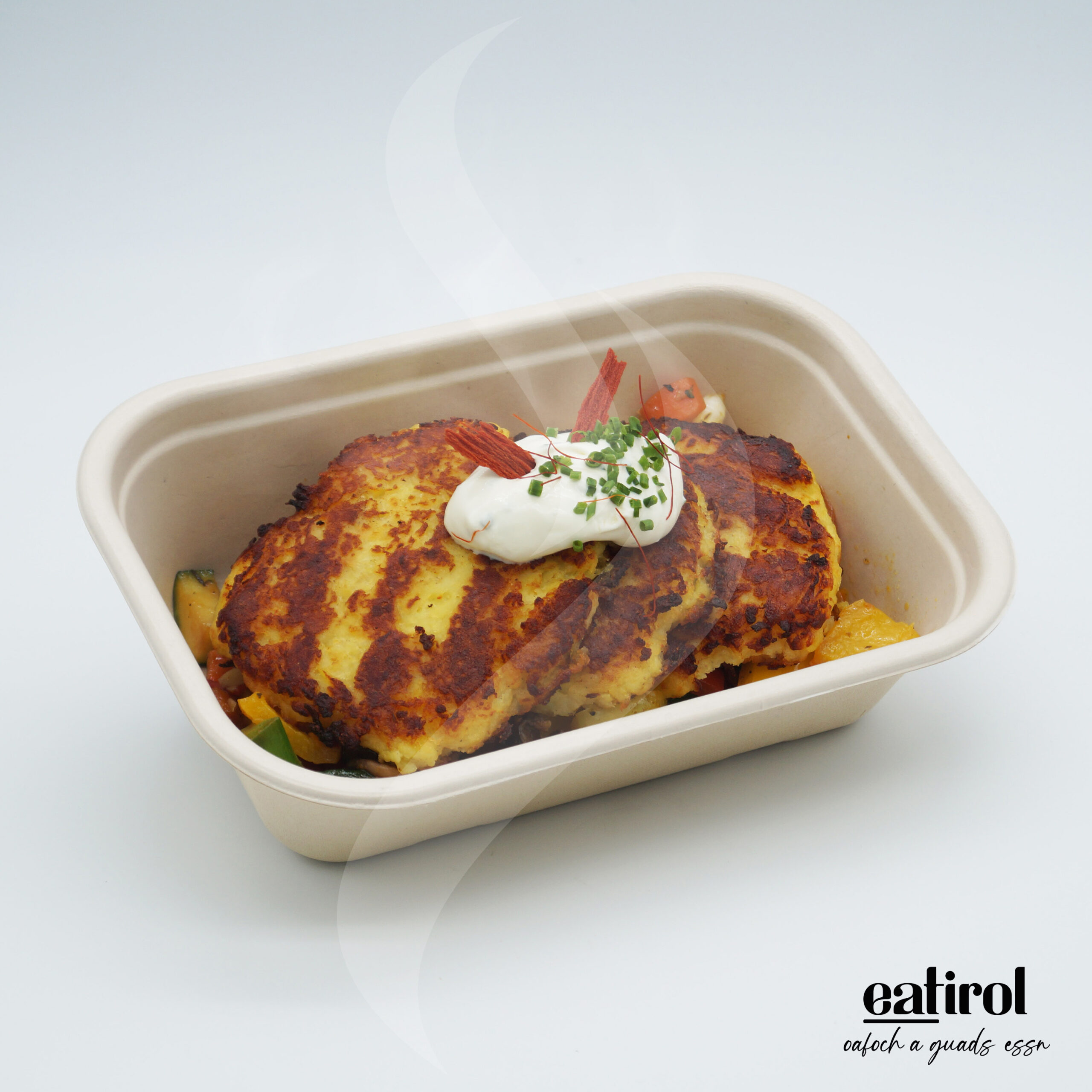 Kartoffelrösti mit Gemüse und Sauerrahm Dip